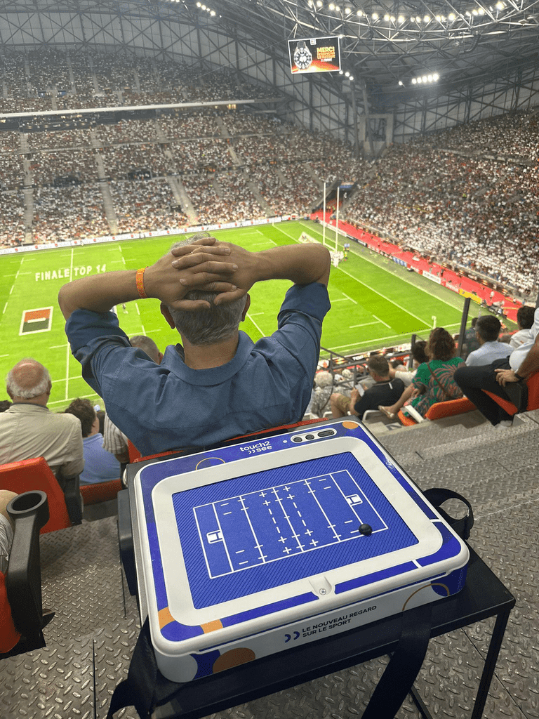 Blind and visually impaired fans join in the fun with a ‘Touch to See’ tablet. At rugby games, the pitch-shaped tablet is equipped with a magnetic disc that replicates the movement of the ball as it happens – enabled with 5G, edge computing and AI, alongside in-ear commentary.