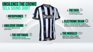 The shirt generates different vibrating patterns in response to home goals, clapping, singing and away goals – although the latter action for this game was not required as Newcastle beat Spurs 4-0.