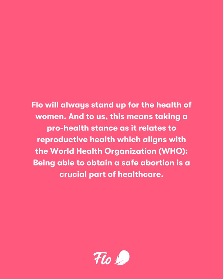 “We will not see your personal data….Flo will always stand up for the health of women. And to us, this means taking a pro-health stance as it relates to reproductive health which aligns with the World Health Organisation. Being able to obtain a safe abortion is a crucial part of healthcare.”