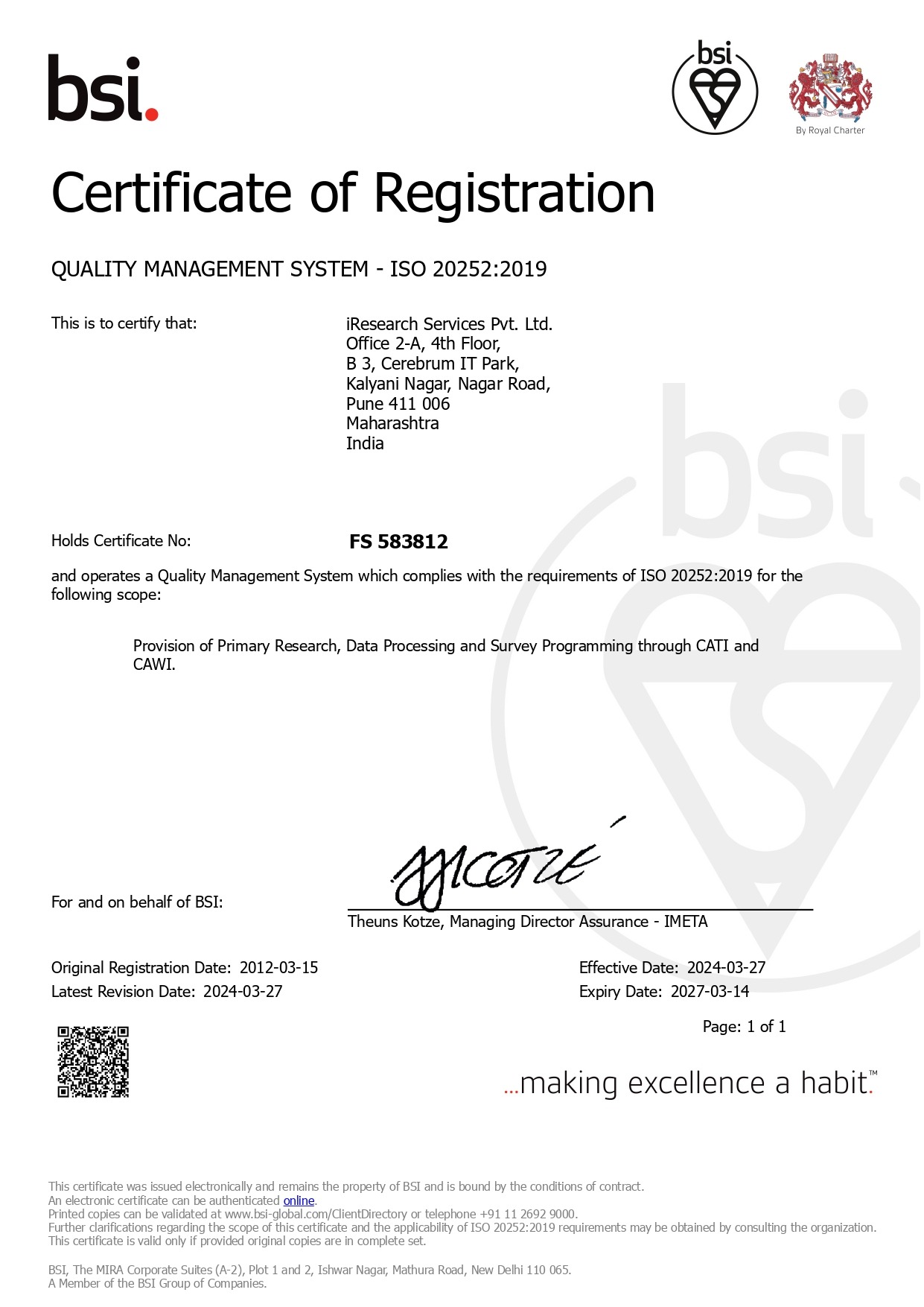 If you have any questions about this notice, then please speak to your project manager, sales representative. We have a Data Protection Co-Ordinator, Siddharth Srinivasan, who can explain in more detail how your information is looked after. Our Data Protection Officer has overall responsibility for your information, if you need further information, please email dpo@iresearchservices.com