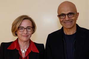 Vodafone Group chief executive, Margherita Della Valle and Satya Nadella, chairman and CEO of Microsoft
